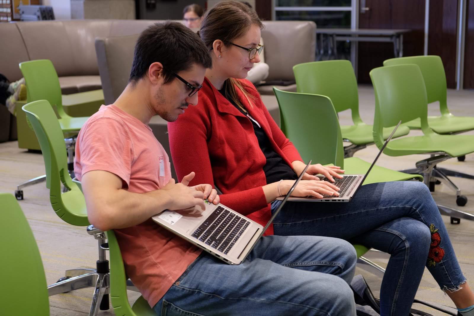 Alex and Anika from GCI and WICTo at work editing Wikipedia